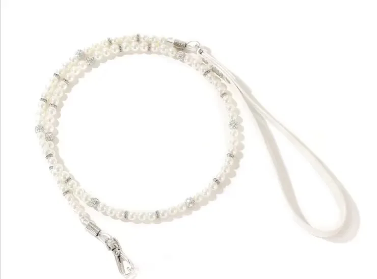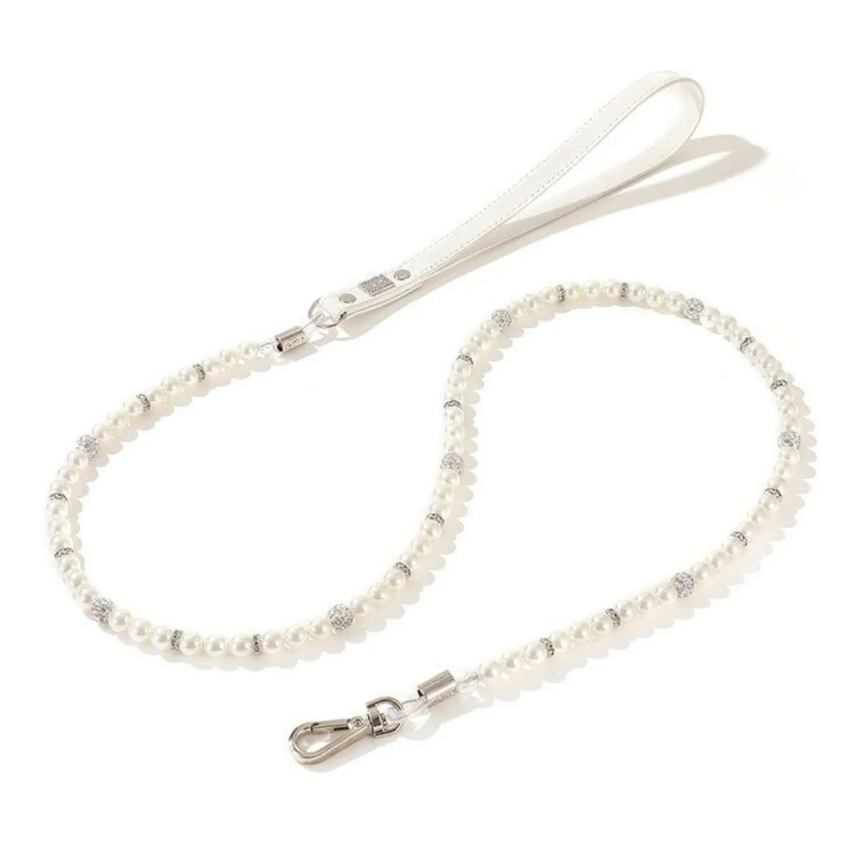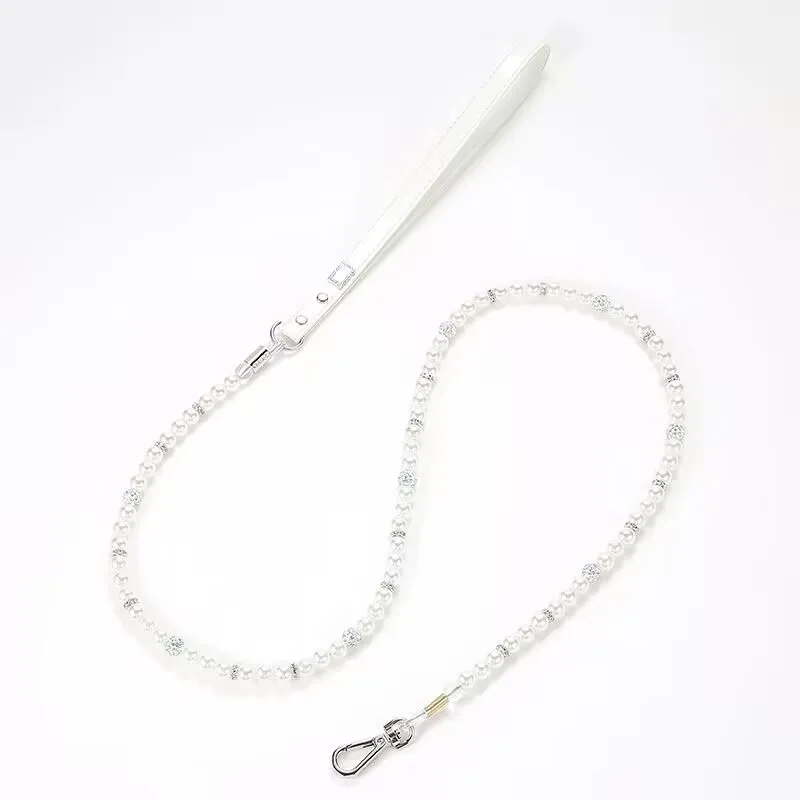Luxury White Imitation Pearls Diamond Ball Pet Dog Chain Leash Walking Jogging Leads Leashes For Small Medium Size Dog Cat Lead