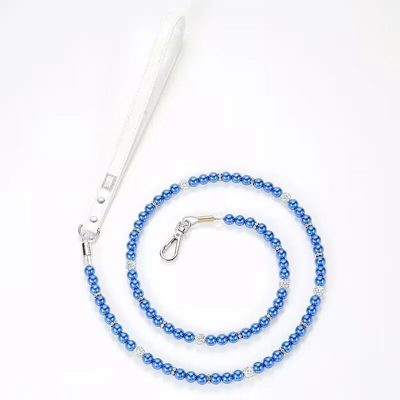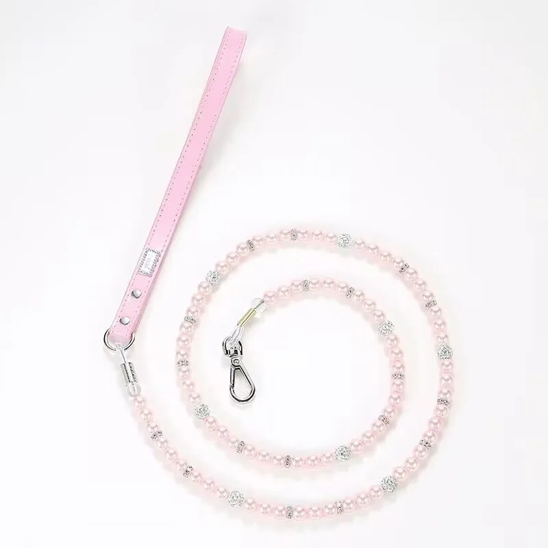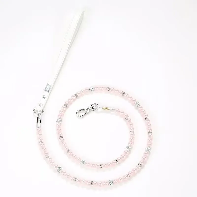 Luxury Imitation Pearls Diamond Ball Pet Dog Chain Leash Walking Jogging Leads Leashes For Small Medium Size Dog Cat Lead
